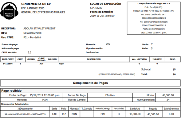 posteriormente se expedirá un CFDI por cada uno de los pagos que se reciban, en